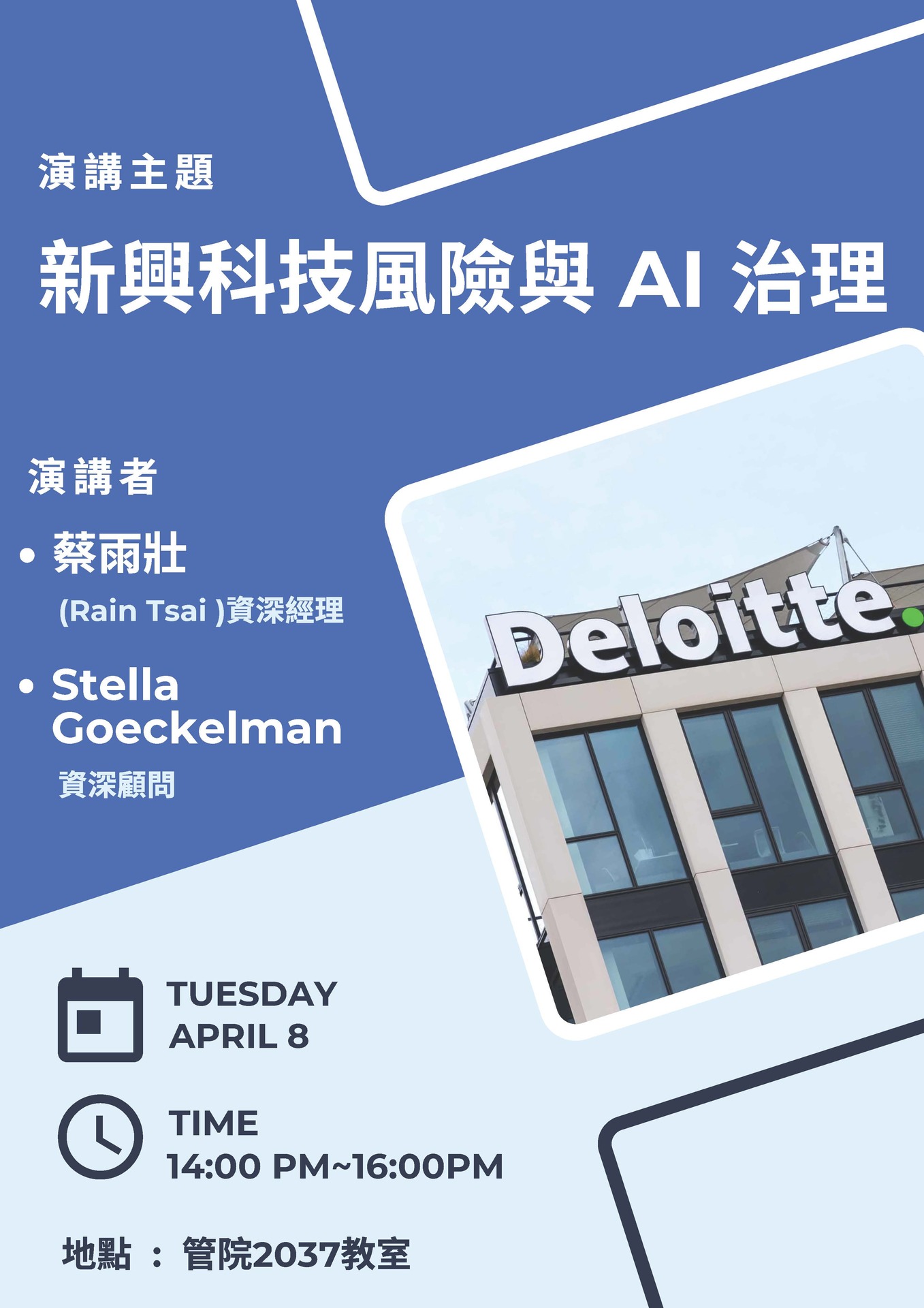 【職涯活動】蔡雨壯 & Stella Goeckelman資深顧問-勤業眾信-專題演講(2026.04.08)